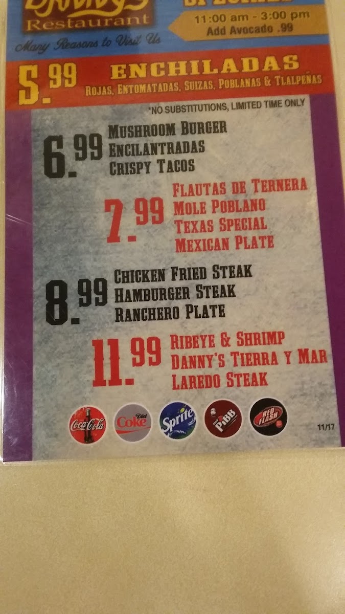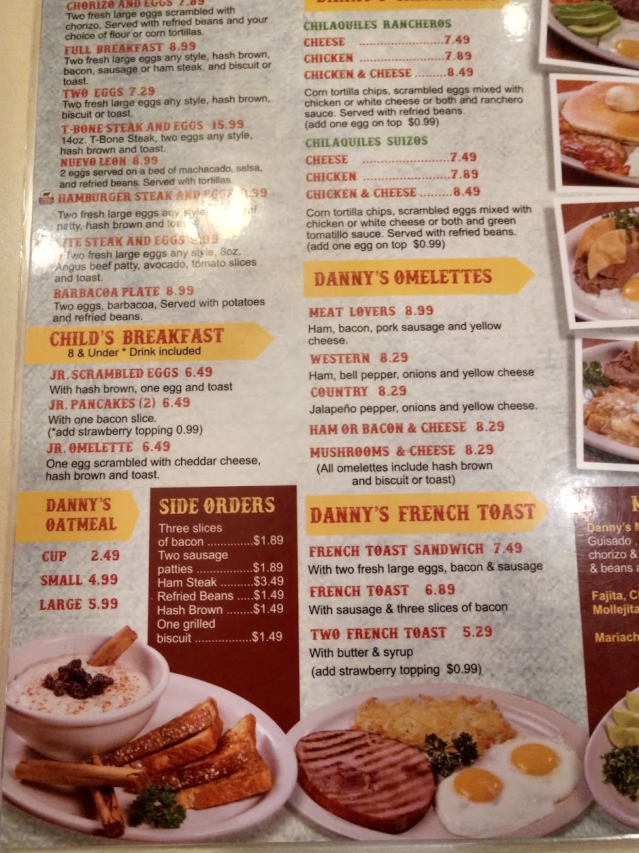 Danny's Restaurant offers a menu that blends traditional Mexican classics with comforting breakfast favorites, perfect for any time of day. The selection feels approachable and familiar, making it an easy choice whether you’re starting your morning, enjoying a casual lunch, or settling in for a relaxed dinner.